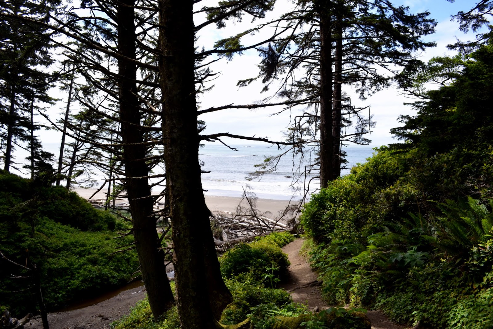 After hiking about a mile along a river through the forest we emerged on the coast.